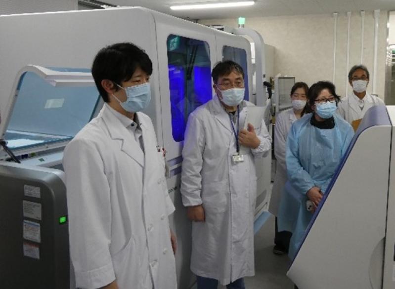 17日は本学津島キャンパス内の5箇所の施設・研究室で、18日には岡山大学病院の遺伝子・ゲノム融合推進検査室を見学しました。