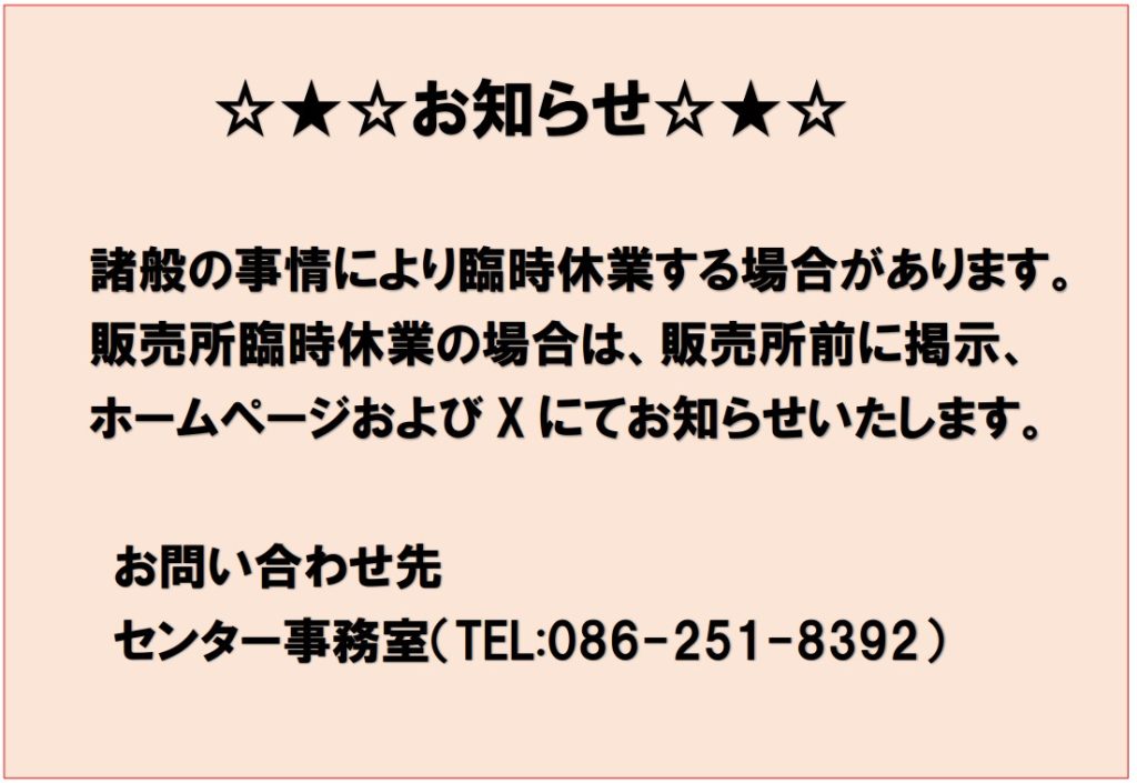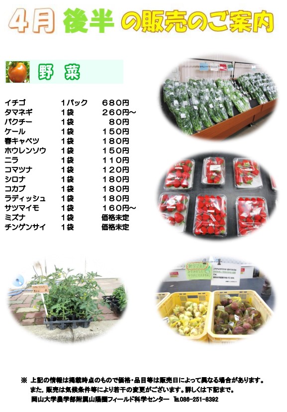- 場所 岡山大学農学部附属山陽圏フィールド科学センター内販売所