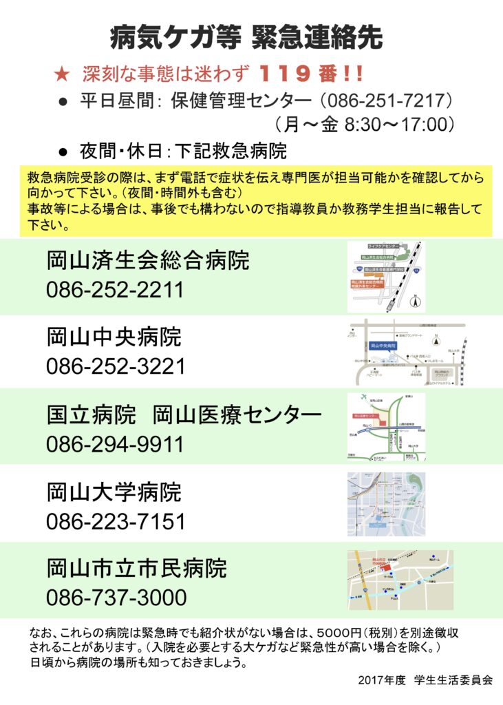 病気ケガ等 緊急連絡先